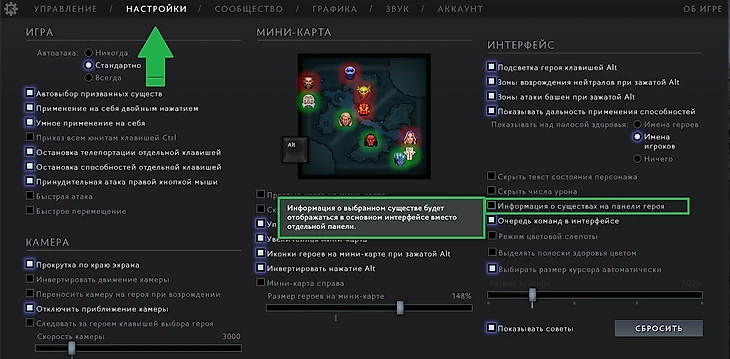 Теперь мы не потеряем выделение вражеского героя, когда будем: