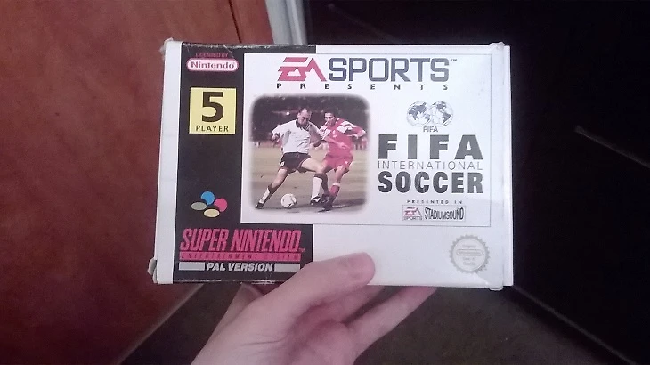 В 1995 у меня появилась SNES. Спортивные игры на Нинтендо были не так круты, как на Сеге, поэтому я рос на платформерах, сайдскроллерах, шмапах да РПГ. Однако в коллекции есть и спорт, в основном баскетбольные игры, но и футбол тоже был – FIFA Intertantional Soccer, предок всей линейки FIFA от EA Sports. 30 сборных с ненастоящими футболистами в составе, вид на поле под углом, непробиваемые вратари (в NHL 94 было с этим еще хуже) самая базовая анимация и простейший набор движений игроков.