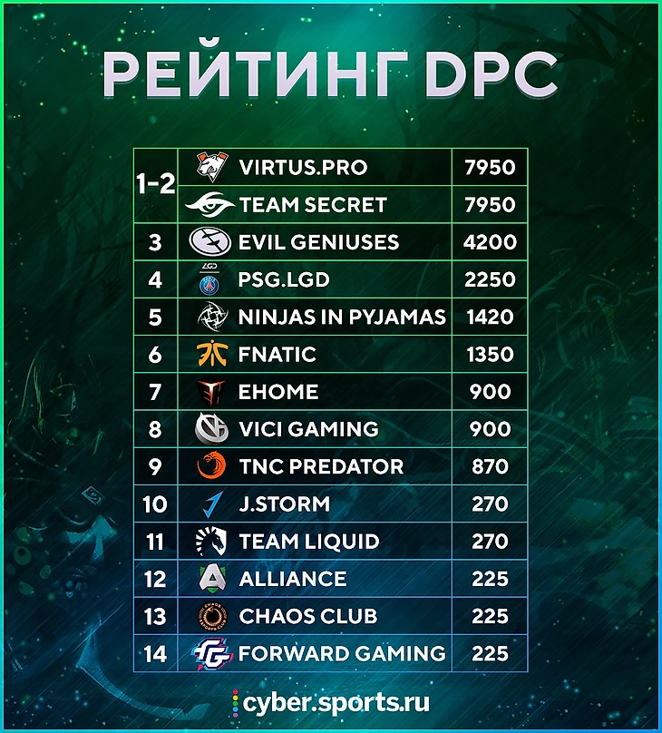 Напомним, что за победу на майноре команда получает 120 очков, за 2-е место – 100. За последнее место на мейджоре дают 75 очков, за 9-12-е место (по сути, один пройденный раунд в нижней сетке) – 150.