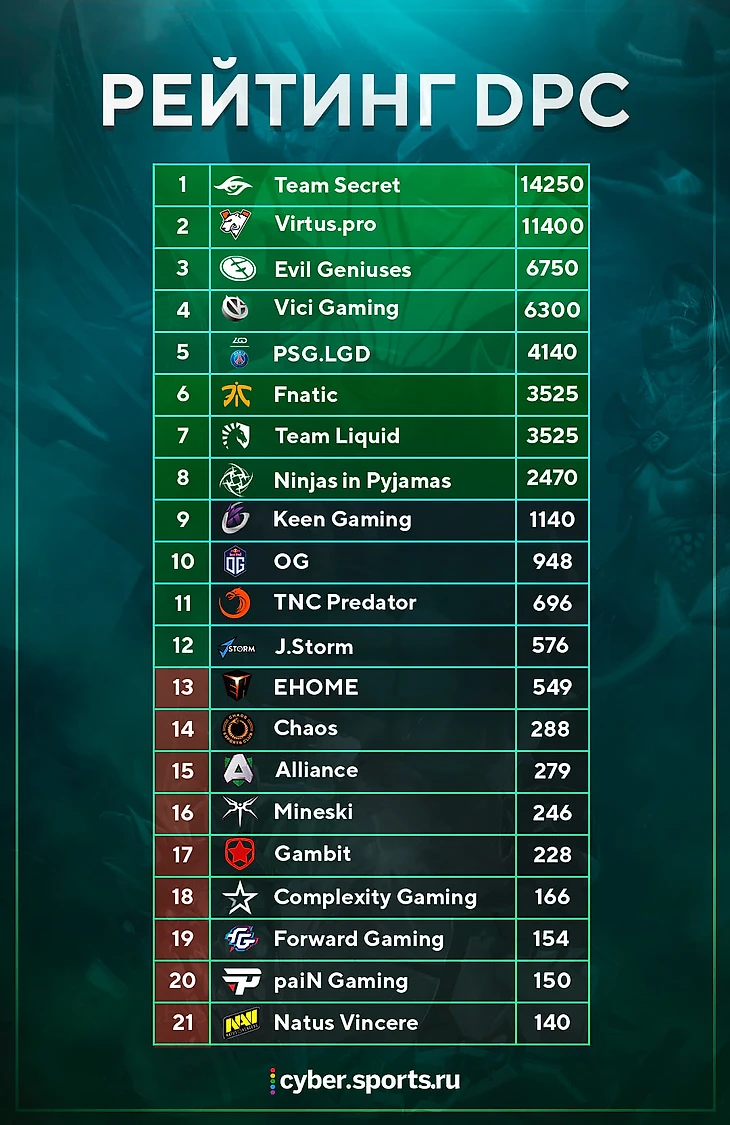 8 турниров DPC прошли, в этом сезоне осталось еще два. Рейтинг выглядит так: