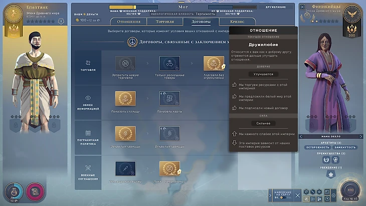Не нужно держать в голове сотни параметров: интерфейс подсказывает оптимальные места строительства, необходимые исследования, выгодные соглашения. Монотонное повторение не перегружает голову и даже наоборот расслабляет. Humankind не требует концентрации и не напрягает – это редкость для стратегий. Страшно вспоминать, как в Crusader Kings 2 мне приходилось записывать все в отдельный блокнот, чтобы не забыть об очередной постройке.