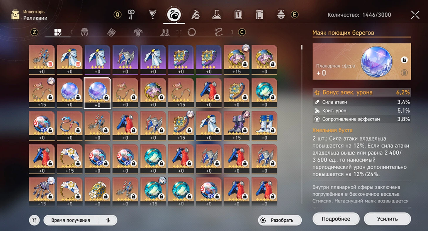 Следите за тем, чтобы в дополнительных характеристиках были крит. шанс, крит. урон, сила атаки в процентах и скорость. Такие реликвии можно оставлять.