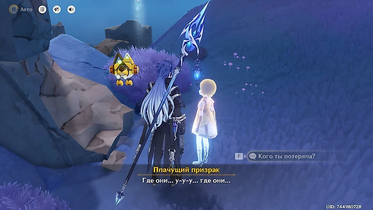 Плачущий призрак на Кладбище ночи в Genshin Impact