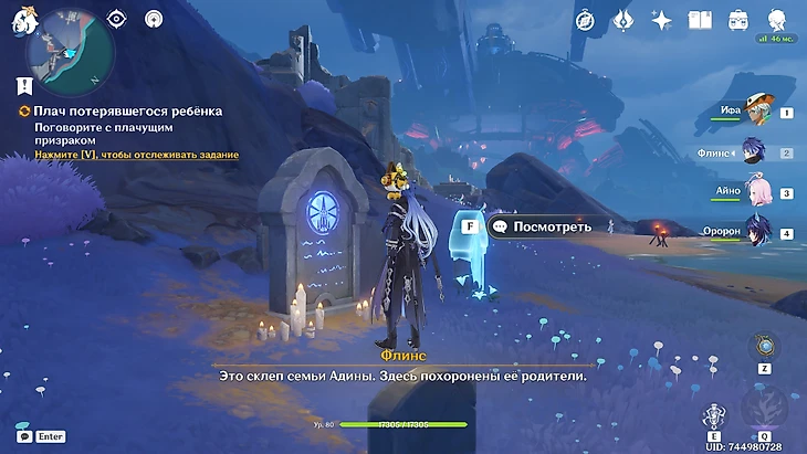 При приближении призрак исчезнет, а после телепорта вернется как ни в чем не бывало. С ней может поговорить только Флинс – так начнется квест «Плач потерявшегося ребенка».