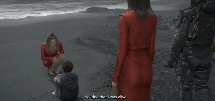 • У героини Леи Сейду, Фреджаил, тело очень старой женщины, поэтому она всегда носит полностью закрытый костюм и перчатки. Ее изуродовал лидер сепаратистов Homo Demens, Хиггс (его играет Трой Бейкер), заставив пробежаться под дождем в одной лишь маске. Ранее официально стало известно, что дождь в Death Stranding называется Timefall («Времяпад») – все, к чему прикоснутся его капли, мгновенно стареет или разрушается. О тайне Фреджаил станет известно после третьей главы, когда игроку покажут ее дряхлое тело. Здесь же начинается часть кампании, о которой журналистам запрещено рассказывать до 11 ноября.