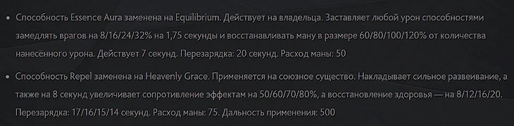 Но в патче 7.20 удалили и Ауру ОД и Репел. Вместо ауры добавили Equilibrium, вместо Репела – Heavenly Grace.