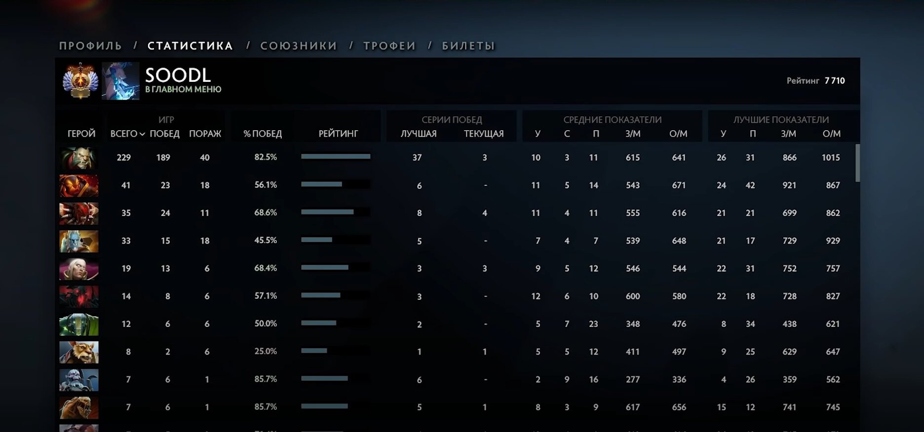 Уже после, когда в Доте появился матчмейкинг и рейтинг, я откалибровался на 4100. Тогда я играл на всем: и на керри, и в мид ходил, и на саппортах, да даже в лес ходил на Фурионе с Мидасом. Мой рейтинг колебался в районе 4 тысяч, но ниже 4000 не опускался никогда. У большинства профессионалов ММР был в районе 5400−5500. Точно помню, что у Хвоста в первую неделю было 5100 ММР, когда у меня было 4100.