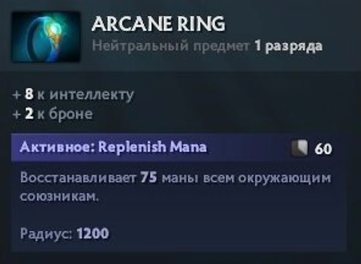 Полная мана на ранней стадии игры – всегда приятно, но многим саппортам от артефакта нужна именно броня, которую дает только кольцо, Spark of Courage и Broom Handle. Последние две нейтралки дают совсем несущественные бонусы для саппортов, а Arcane Ring дает еще и 8 интеллекта сверху!