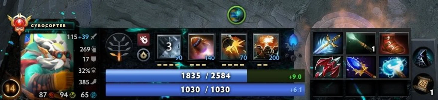 Начну с Дэвида «Parker» Флореса на Гирокоптере. У Паркера Гиро 30-го уровня Dota Plus, к тому же перуанский керри сейчас на слуху.