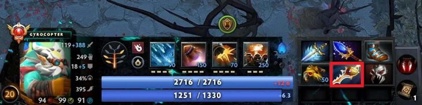 3. Рапира на Гиро третьим слотом – вполне рабочий план. Если в моменте нужно где-то взять много урона, то это лучший выбор в игре. Главное, сразу докупить масочку за 900 – с Дивайном и Аганимом она даст кучу лайфстила и значительно снизит шансы сразу же потерять Рапиру.