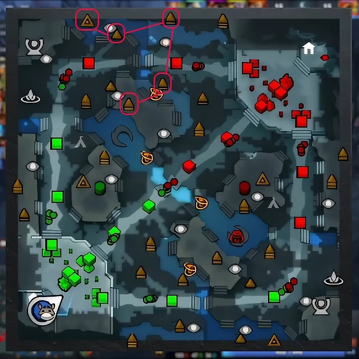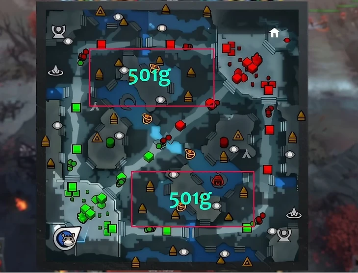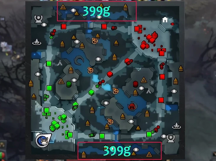 Но фармить еще и вражеских Древних на краю карты выгоднее, пусть и крайне опасно. Если вы способны добавить к классическому паттерну вражеских Древних позади вражеской Т1, то получите ~588 золота просто из леса.