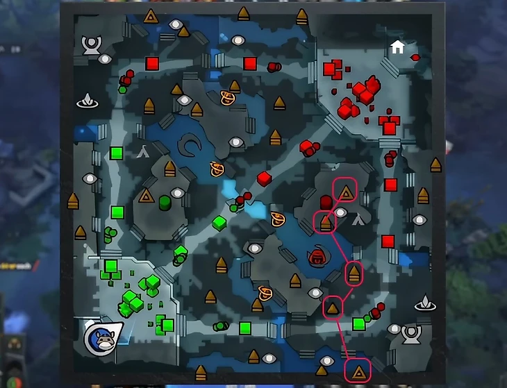 Однако фарм в ранней игре не только космические значения золота, но и безопасность вашего героя, а также возможность быстро пропушить пачку на ближайшей линии. А значит, 3 самых ближайших лагеря к базе – не лучший паттерн для фарма. Уж слишком они далеки от линии.