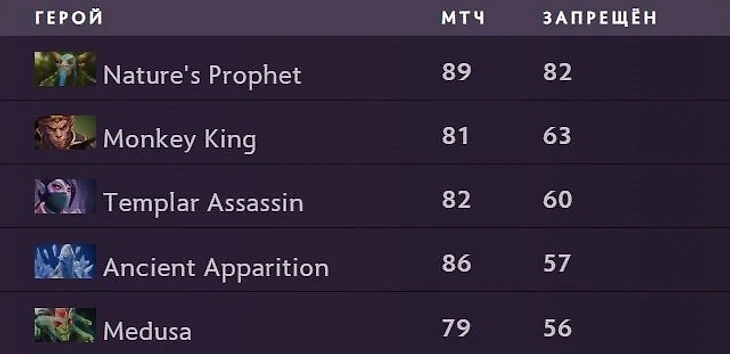 Самые запрещаемые герои ESL One Raleigh. Источник: stats.spectral.gg