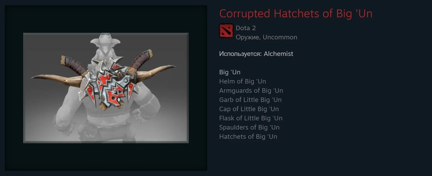 Самый дорогой косметический предмет на торговой площадке – Corrupted Hatchets of Big ‘Un за 162 273,30 руб.
