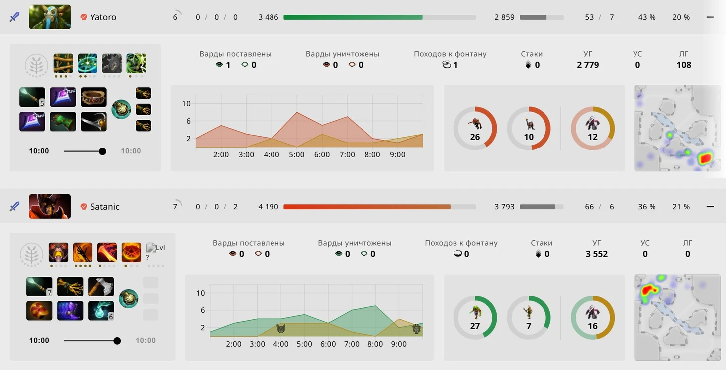 Игра началась куда более активно со старта: Сатаник помогал команде на алтаре Мудрости, Яторо тоже туда прилетал. Оба погибли.