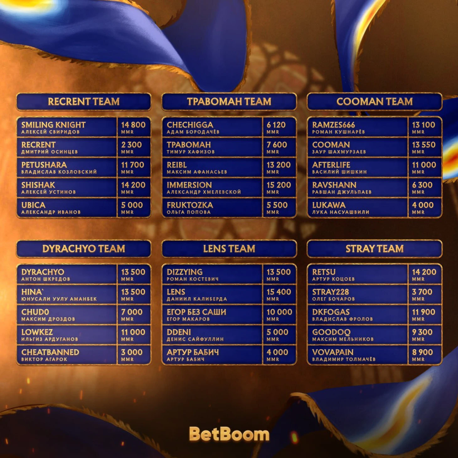✏️ Общая сумма MMR в команде не должна превышать 48 000;