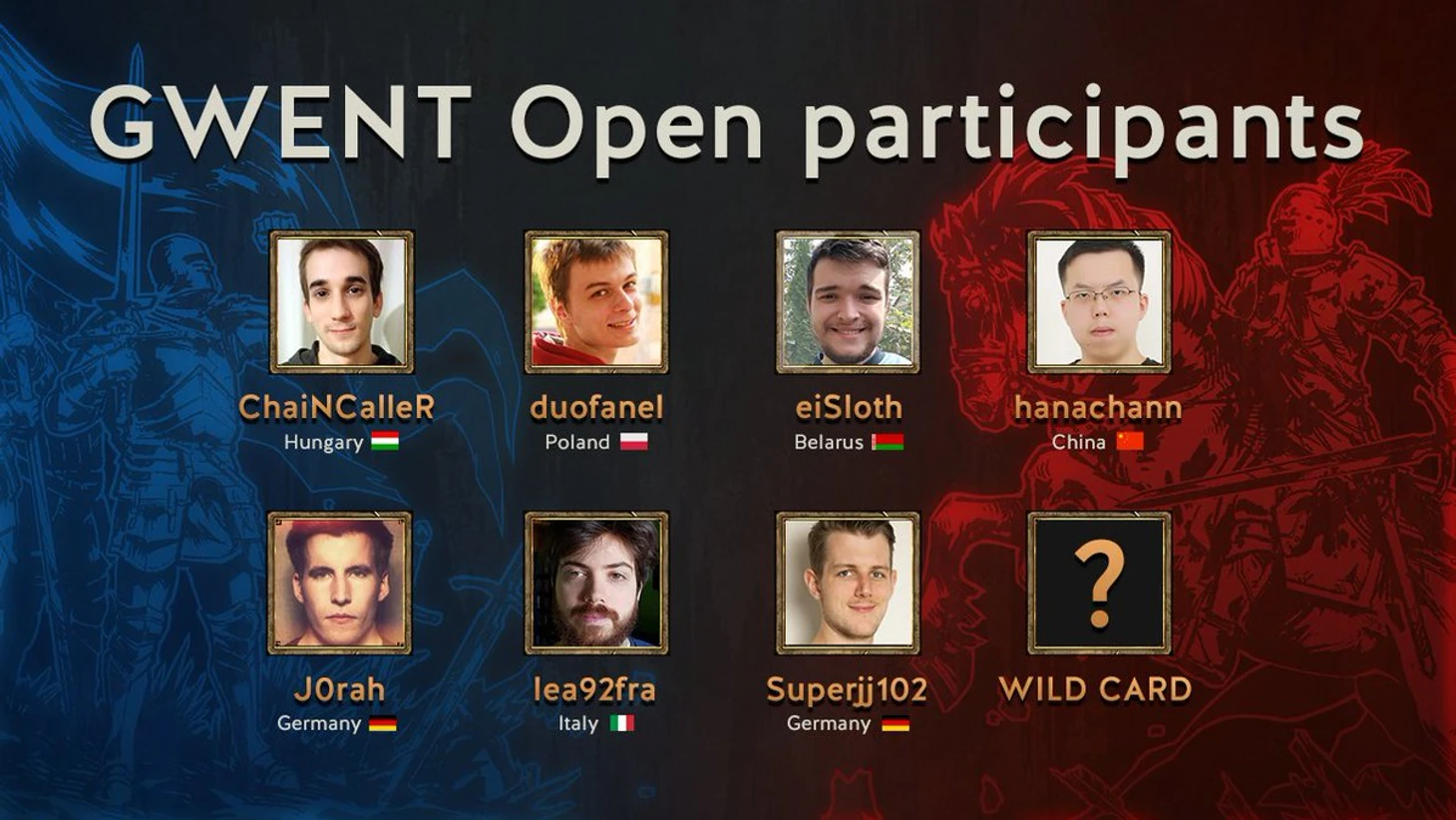 25-26 августа на Gamescom пройдёт второй официальный турнир по Гвинту – Gwent Open. Первые 7 участников были отобраны по итогам рейтинговой таблицы по состоянию на 1 августа. Последний участник должен был отобраться через Wild Card квалификацию – мини-турнир 24 числа. В него регистрировались те, кто занял места ниже по рейтингу. Кто же смог попасть в финальный турнир?