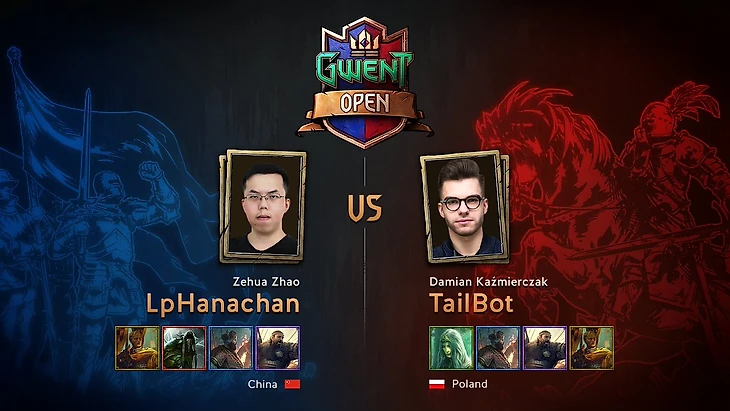 В первом матче дня встречаются опытные фавориты турнира Зехуа "LpHanachan" Зао (Китай) и Дамьен "TailBot" Кажмерчак (Польша). Фактически это повторение финала турнира Gwent Challenger #3, прошедшего недавно.