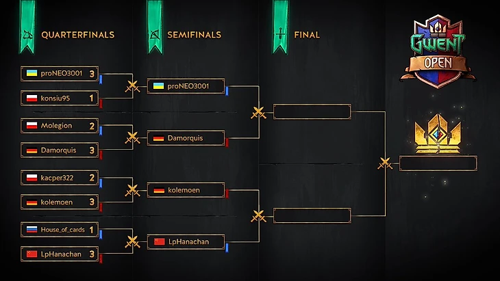 В четвертьфинал попало 4 новичка серии Gwent Masters. Поразительно, но все они вылетели уже на этом этапе. Действительно ли сказался опыт более частых гостей турниров? Важно отметить, что некоторые из новых имен для киберспорта Гвинта показали неплохую игру и боролись практически на равных. Впрочем, у них еще остается возможность проявить себя.