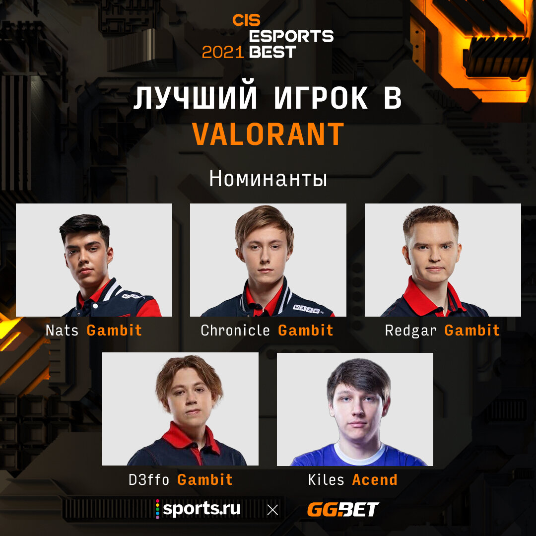 Игроки Gambit по Valorant Аяз «nAts» Ахметшин, Тимофей «Chronicle» Хромов, Игорь «Redgar» Власов и Никита «d3ffo» Судаков попали в шорт-лист номинации «Лучший игрок в Valorant» премии CIS Esports Best 2021.