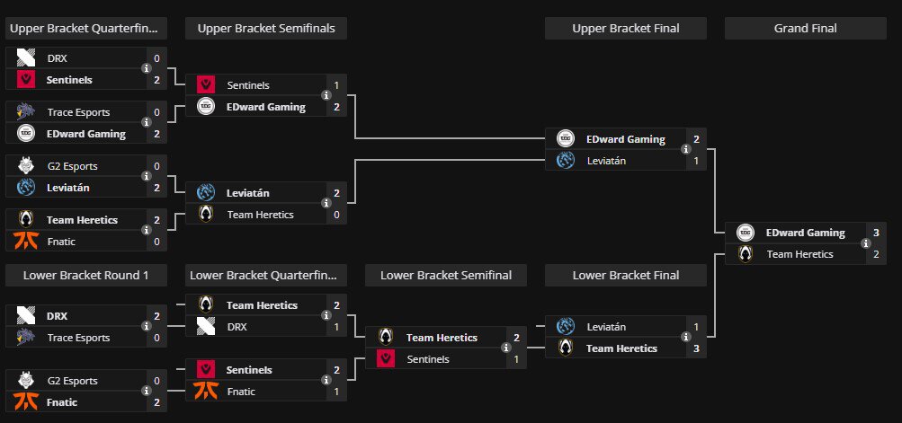 Участники: G2, DRX, Sentinels, Leviatan, Edward Gaming, Trace Esports, Heretics, Fnatic