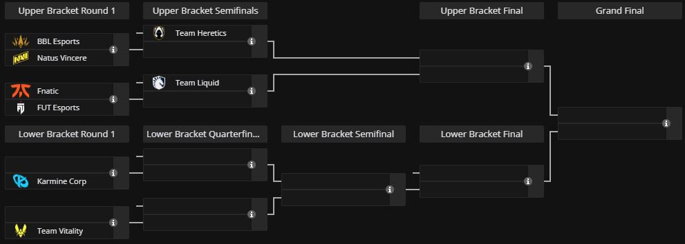 В первом раунде верхней сетки NAVI сыграют против BBL. Победитель встречи сразится с Heretics, проигравший – с Karmine Corp на вылет с турнира.