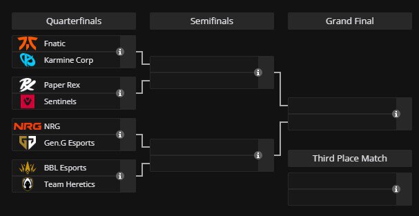 В плей-офф Esports World Cup по Valorant прошли Paper Rex (ЮВА) c Ильей «Something» Петровым, Fnatic с Тимофеем «Chronicle» Хромовым, BBL с Элиасом «Jamppi» Олкконеном, Karmine Corp c Дмитрием «Suygetsu» Илюшином, Heretics (все из Европы), NRG, Sentinels (Северная Америка) и Gen.G Esports (Южная Корея).