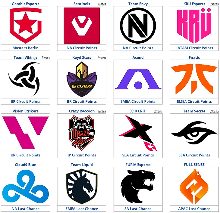 Sentinels (США), Kru (Чили), Liquid (Европа), Furia (Бразилия).