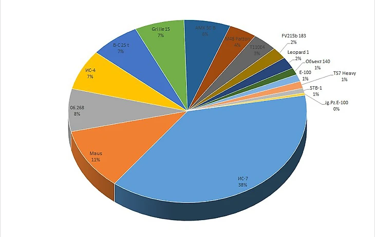 Из 24 танков X уровня в турнирных сетапах ни разу не встречались 8: FV215b, T110E5, T-62A, FV4202, E50 ausf. M, T110E3, AMX 50 Foch (155) и Объект 263. У всех этих танков есть более удачные аналоги с лучшими характеристиками. Жалко T-62A со своим советским коллегой Объектом 140 – из самых часто встречаемых танков они превратились в аутсайдеров. Объекта 140, к слову, взяли в игру всего один раз.