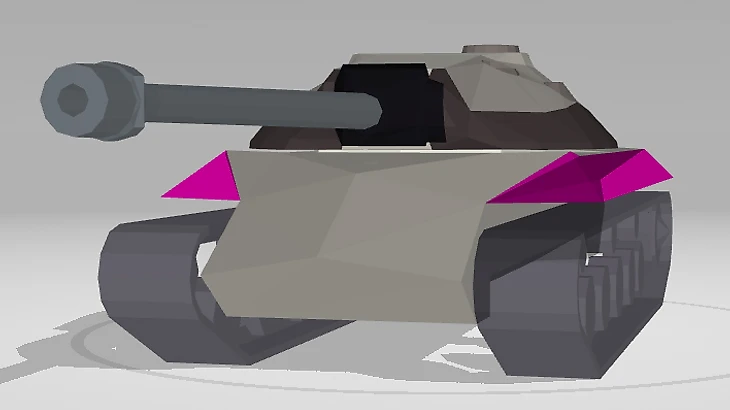 Бортовые экраны на высоких уровнях есть у советских и немецких тяжелых танков: ИС-3, ИС-5, ИС-8, ИС-7 и E 100. У E 100 экран устроен очень просто. Лист брони толщиной 60 мм (выделен фиолетовым цветом) закрывает основную бортовую броню толщиной 120 мм.