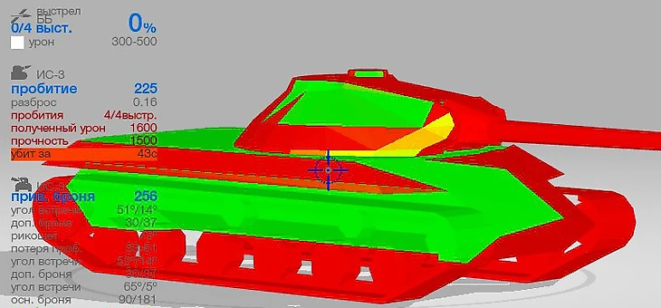 Чтобы нанести урон противнику, необходимо попасть в основную броню танка и пробить ее.