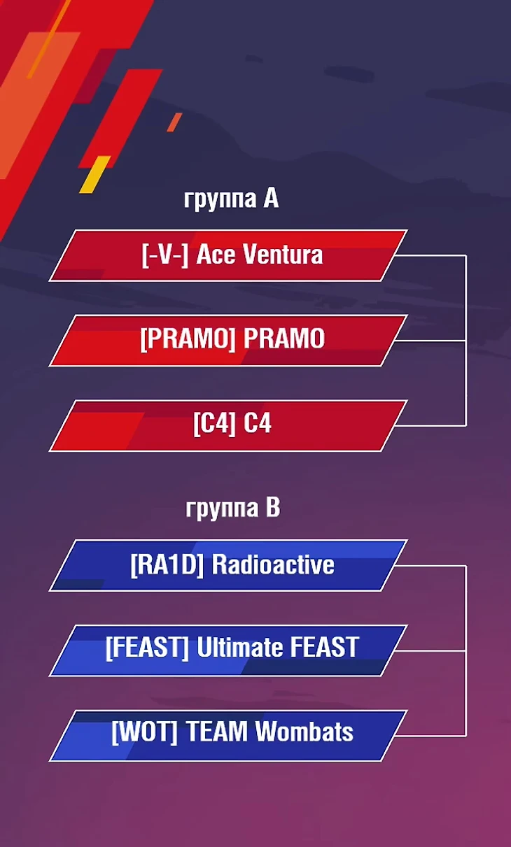 6 команд со всего мира разыграют 100 тысяч долларов – крупнейший призовой фонд для турниров по Blitz. СНГ представляют Ace Ventura [-V-] и легендарная C4 [C4]. С ними будут соперничать Radioactive [RA1D] из Европы, PRAMO [PRAMO] из Америки, китайская TEAM Wombats [-WoT-] и представляющая Азию Ultimate Feast [FEAST].